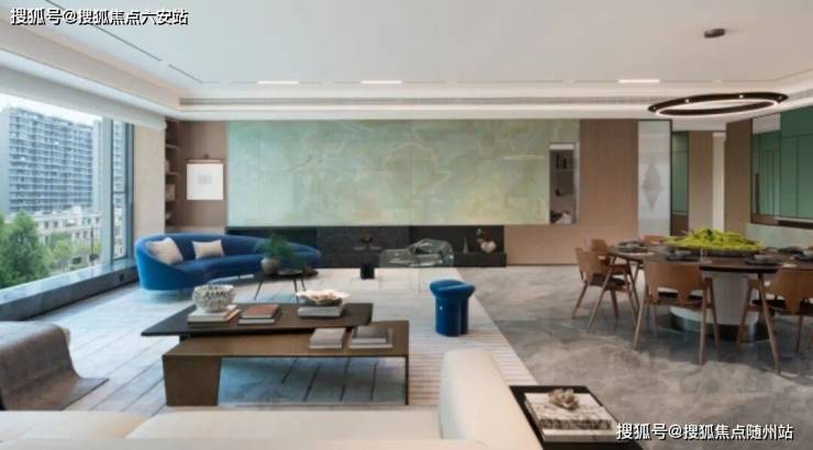 对于高净值客群来说,客餐厅需要「方圆双全」。建筑面积约365平米户型拥有宽约13米的大横厅,不仅可以放得下约10人座的大圆桌,又可以放得下长桌,形成与客厅对望的开放式书房。