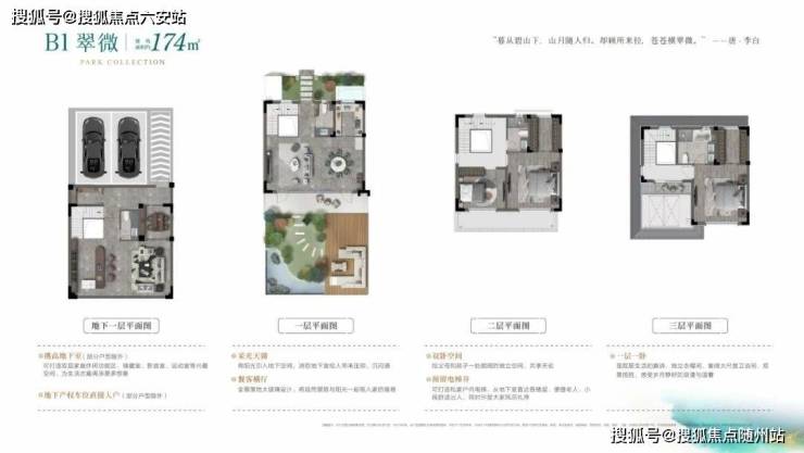 174㎡雅致四院:前庭后院双院落设计,6.8米横厅连接观景露台,主卧套房配备全景落地窗与独立衣帽间;