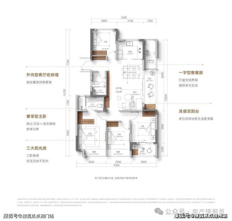 【光合面宽】约9.4米南向采光,阳光洒满角落