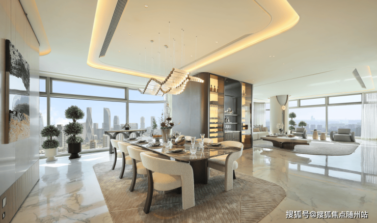 LDKB一体化空间:24米南向开间客厅+200㎡硅谷式社交岛台,配备嘉格纳7件套厨电与V-ZUG智能家电,实现商务宴请与家庭社交的无缝切换。