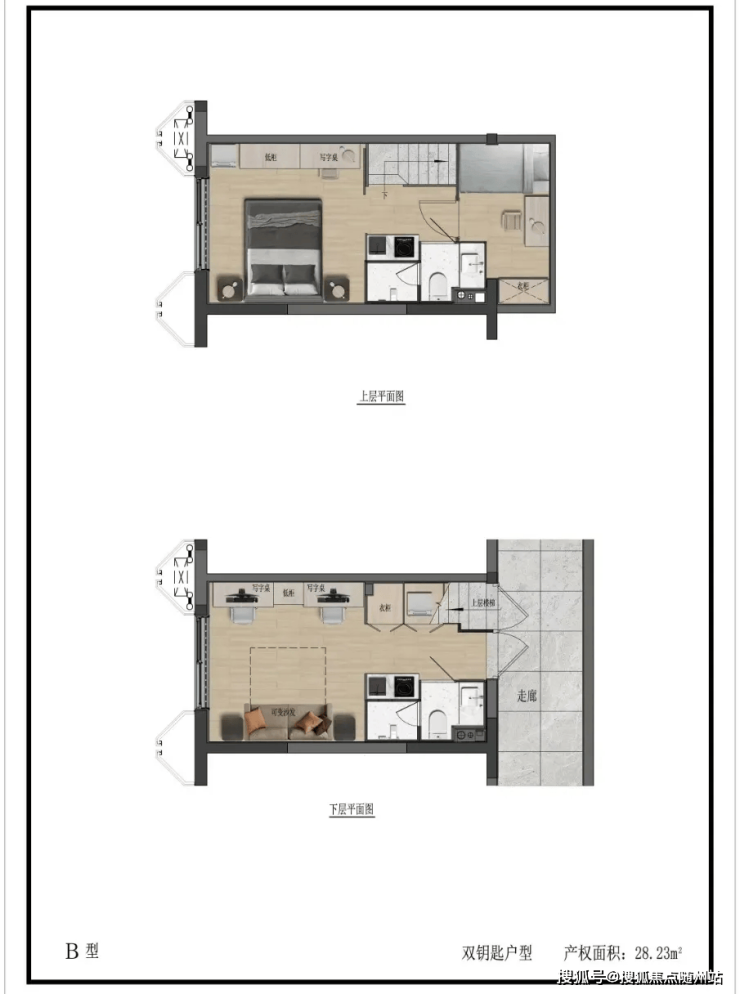 产品类型:建面22-57.71㎡双钥匙LOFT公寓,主力户型为28-29㎡双钥匙三房