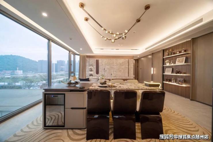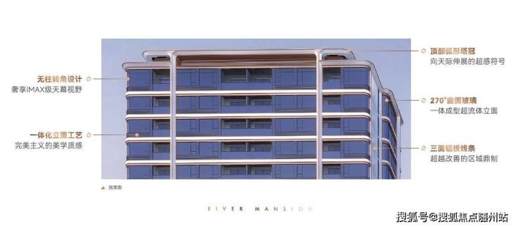 立面它都做出了远超3万+楼盘的超配豪宅感。面铝板加大面积玻璃,中间勾勒金属线条,整体还做了更复杂的曲面造型,打造出很有辨识度的「金框超流体」立面。