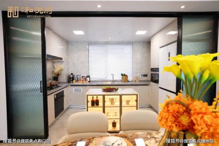 三个朝南开间带来充足的阳光,U型厨房布局, ☎【售楼热线】:400 816 3856 ☎⫷烹饪时刻优雅自在,且与户门距离适中,避免了油烟困扰。另外,卫生间均带窗户,通风效果好,卫生间的门不直面客厅,隐私性好。这样的布局,的确是很多人首套房的不二之选了。