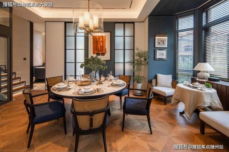 客餐厅采用一体化设计,通过石材、影木、皮革、金属、玻璃等不同材质在光影下的交织,形成张弛有度的现代轻奢多元的场景体验,内敛优雅,充盈着浓郁的都市质感。