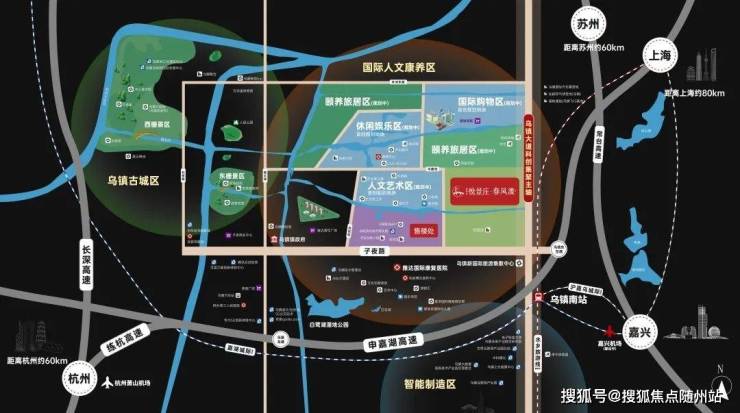项目紧邻乌镇新客站及乌镇南站,随着南站设立,交通提速、板块崛起,未来将承接上千万游客和海量高新技术人才。