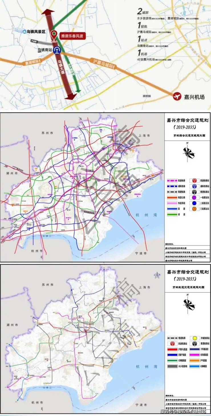 乌镇南站(乌镇城际站):距项目仅约1-2公里,两条城际铁路与一条市城轻轨将交汇于此。未来将是集城际巴士、市内公交、城际轨交三位一体的枢纽型车站。规划建设中,预计2028年竣工。