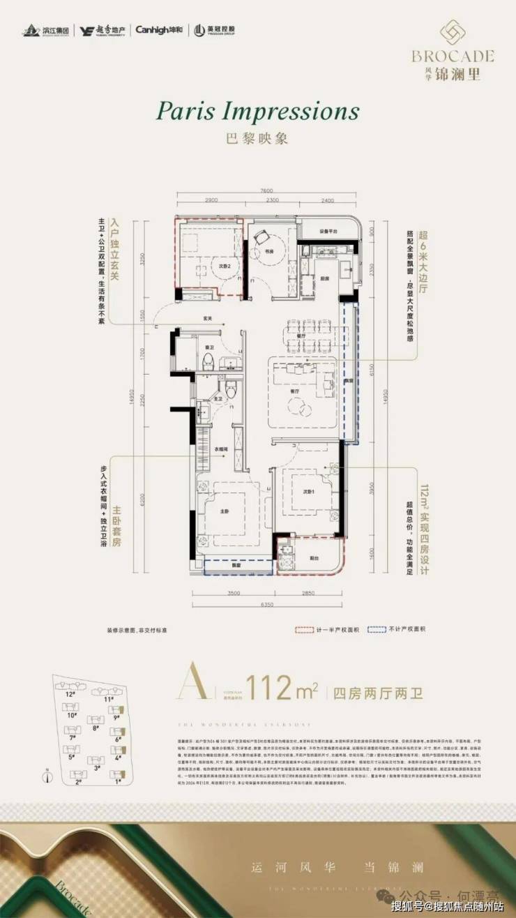 整盘四房格局,112-176㎡为主,超80%高得房率
