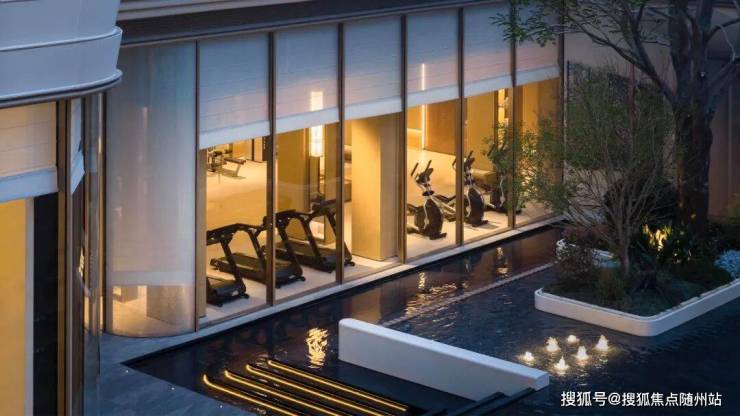 再看约1200方下沉庭院,叠水成瀑,区别于市面上大部分楼盘的“坑洞感”,形成上下两个平行空间的双层滨水度假系统,一看就很赞。