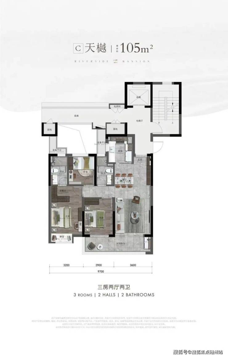 105户型亮点:5.2米大宽厅+超高实用率+收纳+边套户型