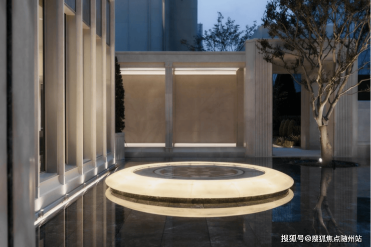 立面构造:采用经典欧式“三段式”设计,米色天然石材与暖色仿石铝板相结合,通过精细的圆弧转角处理,勾勒出温润而柔和的建筑形态。
