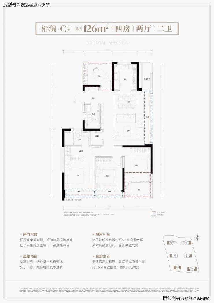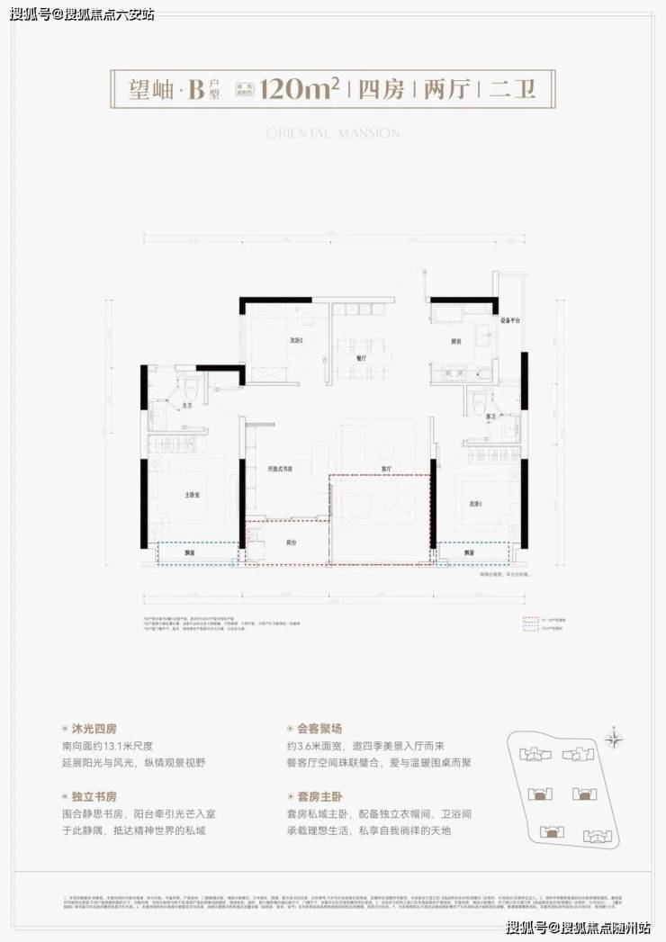 建面约120方户型: