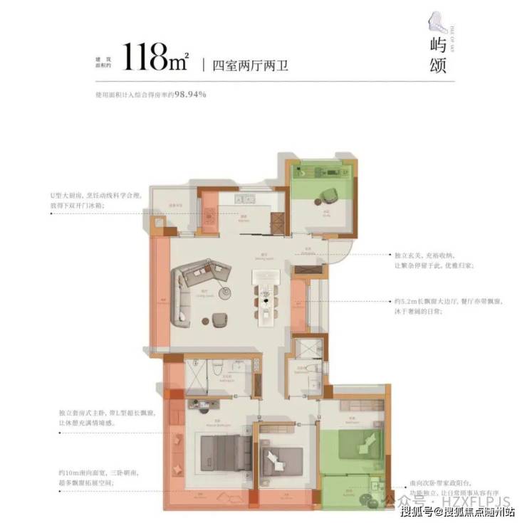 最新迭代升级版户型,以超级得房率,最大化飘窗设计、可拓展阳台等等,让空间实用面积升级扩展。