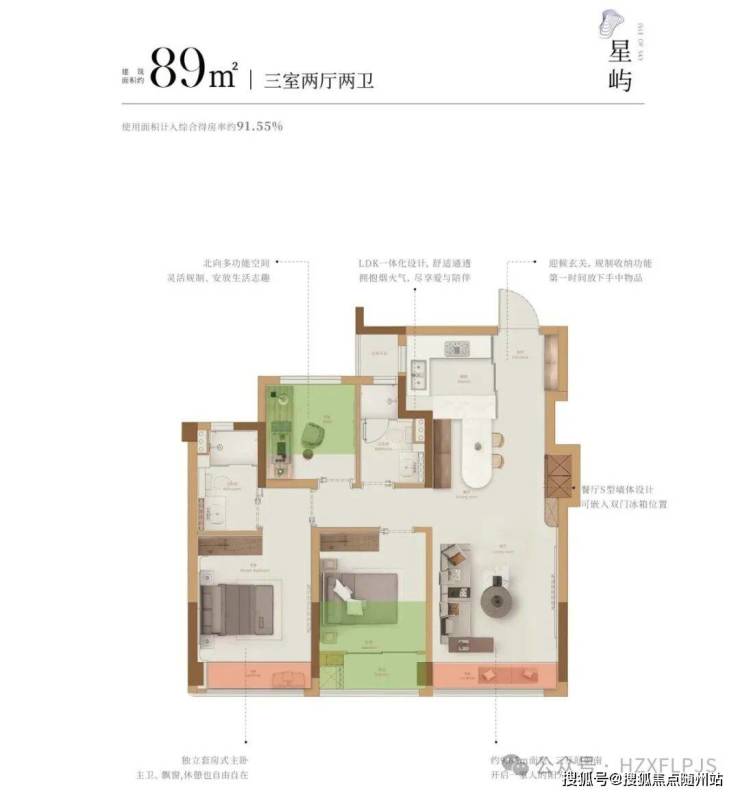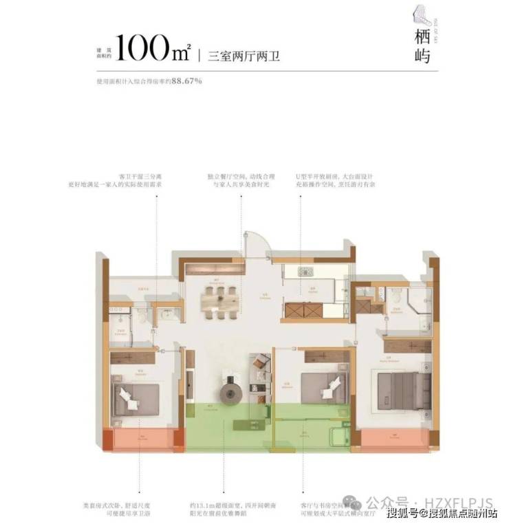 最大约100%得房率、迭代升级户型,89㎡-104㎡三房甄选作品115㎡-132㎡四房改善作品🔥