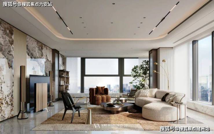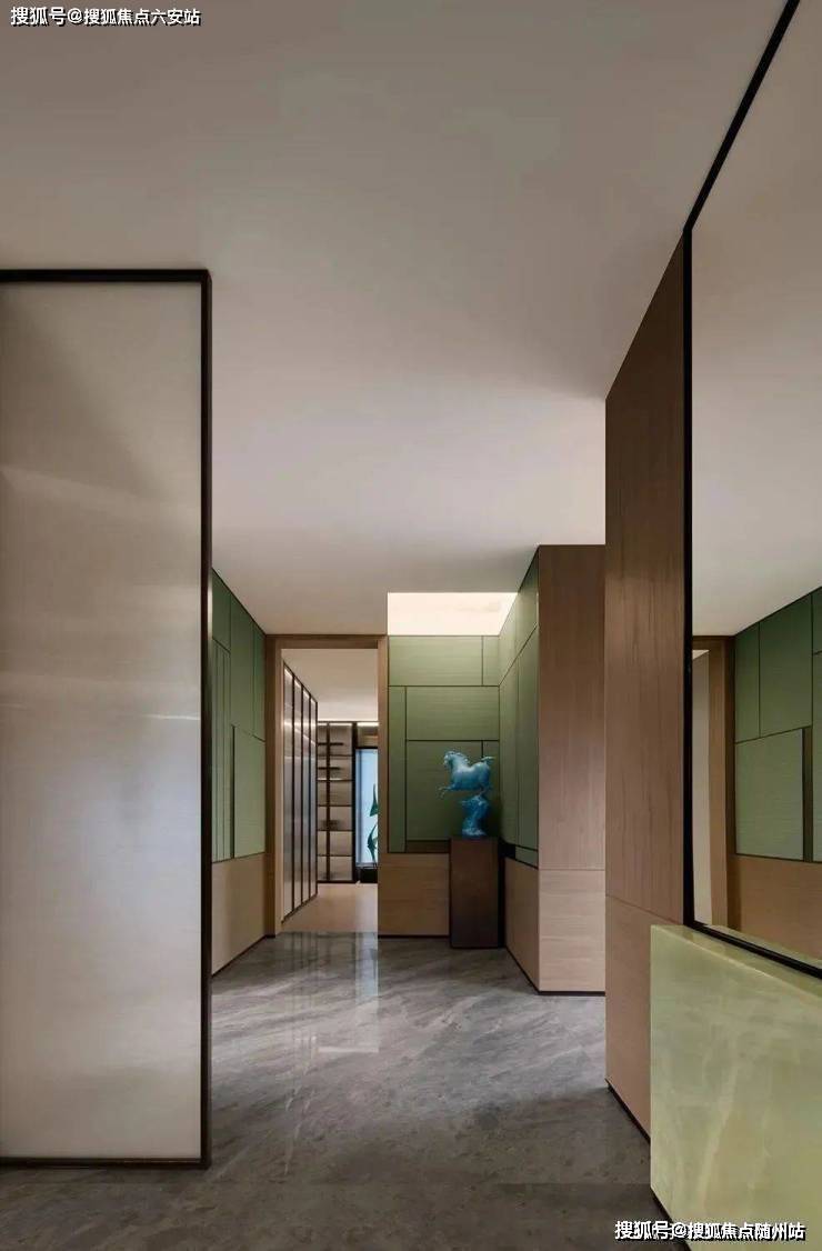 将艺术感进一步融入日常中。特别设计的专属门厅空间,是从电梯厅延伸到家,如同一处艺廊,放慢人的情绪;室内选用了浅金色奢石(外界也称其为“芬迪白大理石”)作为主要的石材,曲面的木饰面也为浅色,整体给人以明亮感。