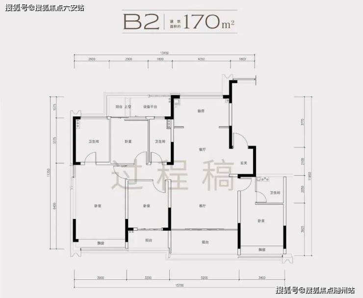 170方户型,是南厅139方户型的放大款,次卧多了一个套房空间。