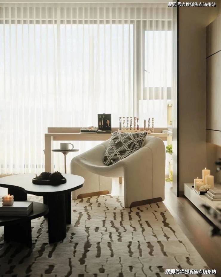 室内拥有独立的玄关,与步入式的衣帽间;玄关液态金属板造型,与立面高级烤漆木饰面,尊贵精致;客餐厅,运用了洄游空间的设计手法;25平米的超大厨房;超3米的挑高空间;全屋智能家居设计;三房朝南设计,