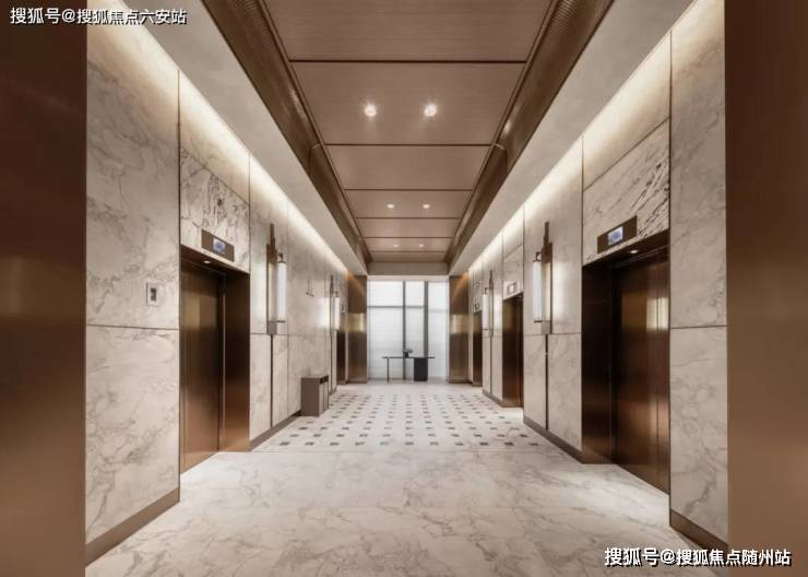 电梯厅,奢感随处可见。地面嵌入玻利维亚蓝奢石、电梯门运用比肩五星级酒店的哑光铜表面拉丝工艺,彰显雅奢特性;电梯内部则以技艺更为复杂的木饰面弧形转角、黄金比例分割的金属哑光拉丝腰线,呼应高级定制的品位。