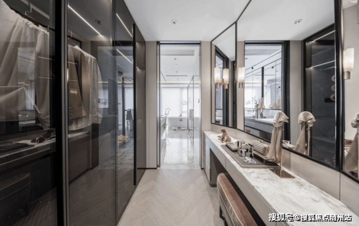 主卧的情绪在层层递进后随着不同的触感徐徐展开。双洄游的卫生间和一整扇梳妆台,则是度假酒店的趣味,没有一个女生对此有抵抗力。