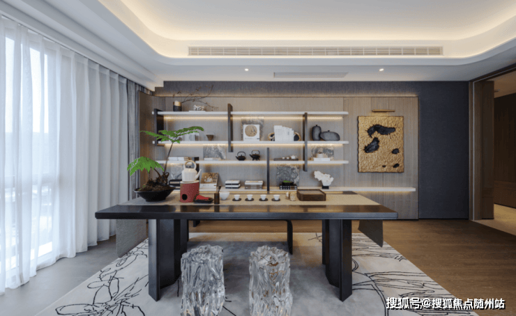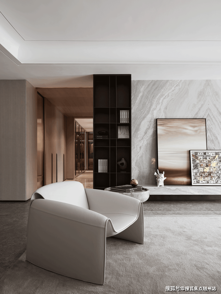 客厅在多重材质的组合下,顺畅融汇 秩序井然素雅的基调来自比例的精准把控和色彩的考究搭配,克制之间彰显出游刃有余的平衡之道!