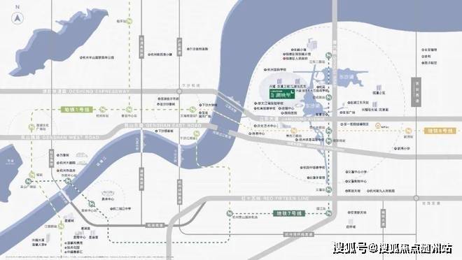 地铁7号线启成路站(已通车):项目东侧800米左右即为7号线启成路站,途经五个站点到达萧山机场、约半个小时可到达奥体、钱江新城、吴山广场等重要行政及商业区域。地铁8号线(已通车):青西三路站,无缝衔接核心区与下沙开发区,换乘1号线可通往杭州东站、武林商圈、西湖、滨江等重要区域。