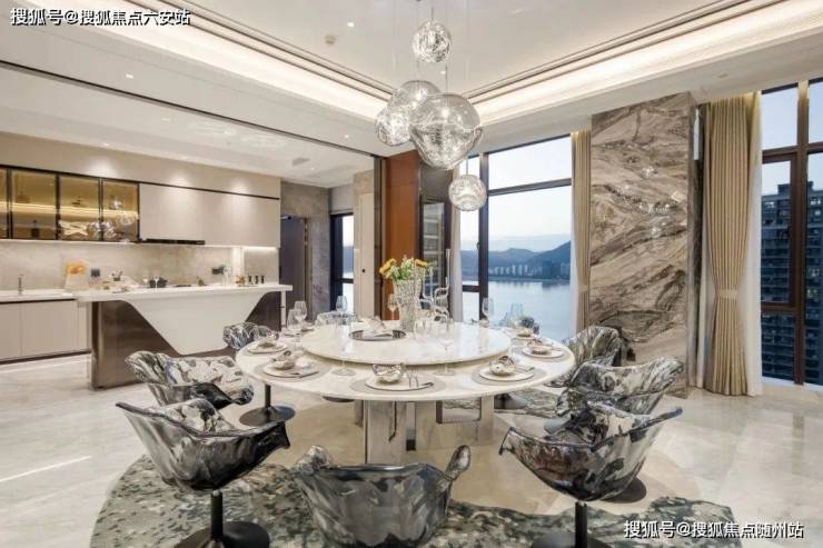 相较于周边区域的江景豪宅,如水晶澜轩的378㎡最大户型,其最大厅面积仅为40㎡,蓝城英冠·滨悦城无疑更胜一筹。其约4.1米的层高设计,不仅在垂直空间上进行了充分拉伸,还与横向铺展的江岸线形成了绝美的呼应,充分展现了“开窗放入大江来”的恢弘气势。