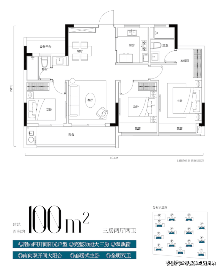 🏠在售面积约:100㎡三开间朝南、105㎡270度采光、128㎡南向双开间大阳台