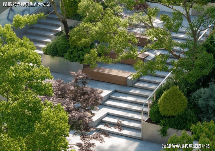 项目内的景观设计别出心裁,高楼间穿插着绿意盎然的景致,竖向变化丰富,为每一处空间赋予了独特的意义。