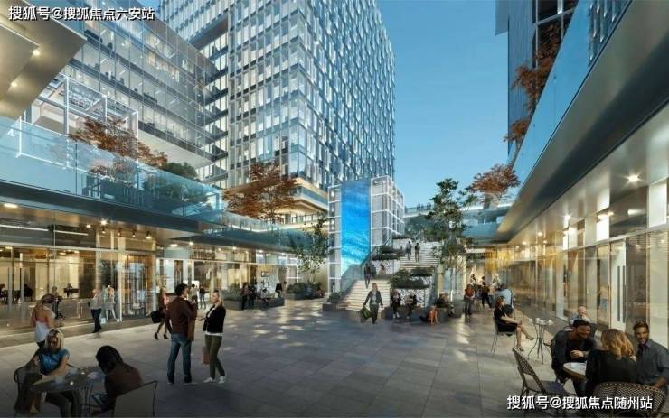 中央商业广场与咖啡厅、共享会议室、动态水景交织,构建“工作-社交-休闲”无缝场域。据Gensler研究,非正式交流空间可提升团队创新力3倍。