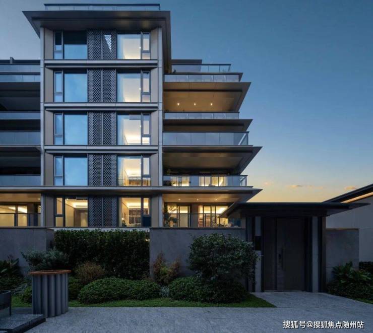 在项目入口的门头设计上,特别选用了普拉达绿奢石与黑松搭配,为建筑增添了隐奢的气质,精心打造的铜门和格栅为业主归家增添高雅的仪式感。