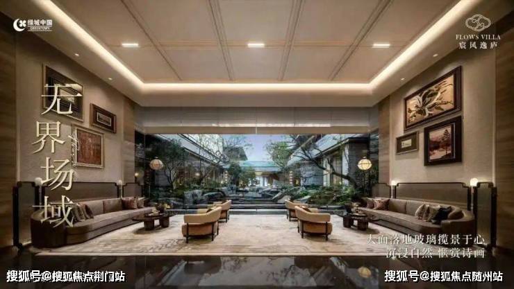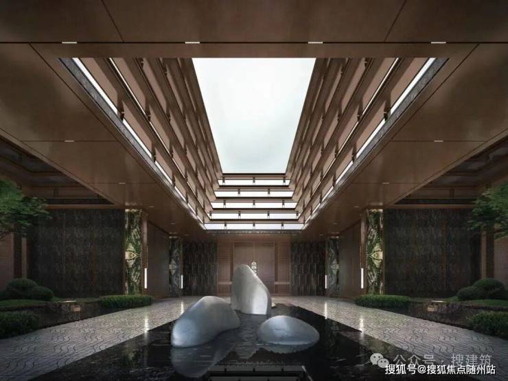 下沉式庭院:约1000方,复刻《溪山清远图》,从东侧“四水归堂”之门,经“十八学士”下沉庭院,景观设计层层递进,通过整面落地玻璃让下沉式景观和归家大门组合一整体,视觉冲击感强,悬挂户外泳池设计,地上地下互相成就景观视野。