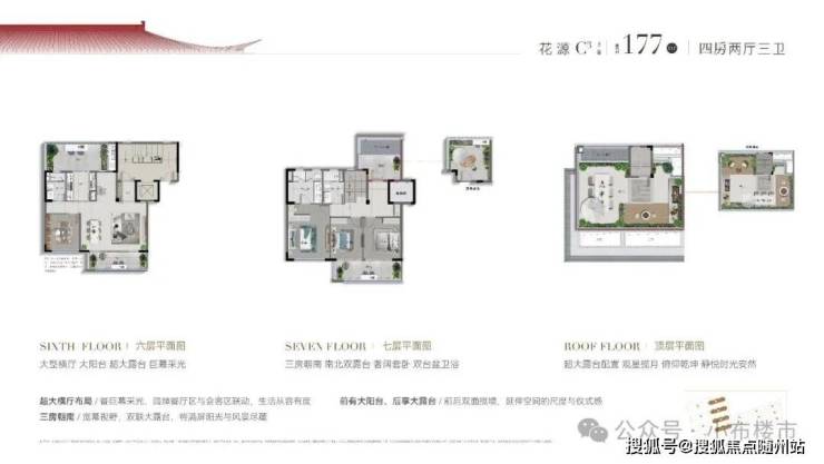 上叠(建面约156-177㎡):屋顶露台+全景窗,尽揽天际线