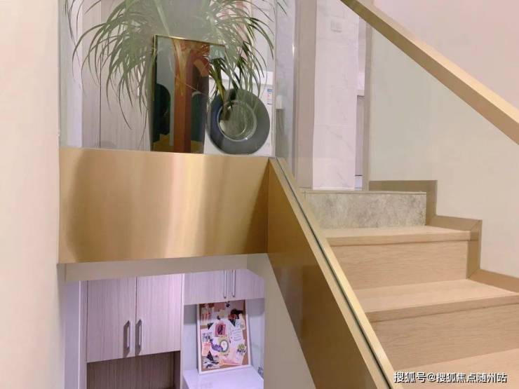 温婉的实木楼梯颜色,柔顺的金属流线外型设计