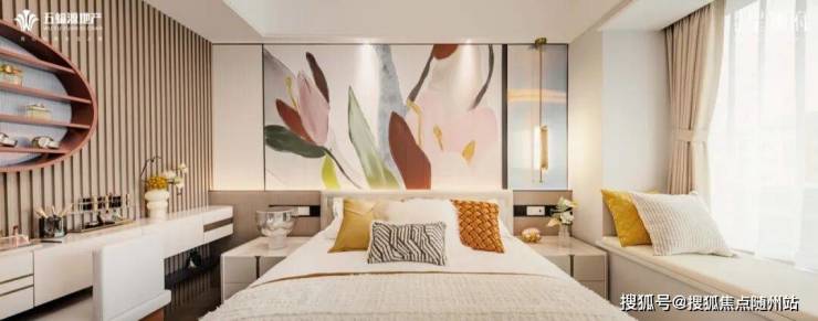 杭颂星澜府在户型的设计上更加游刃有余,主力的89方户型设计成了类四叶草的布局:动线合理、减少走廊的浪费、各卧室独立且私密。同时三开间朝南的设计,面宽达到了9.7米,主次卧均带有飘窗,采光充足,而且主卧为套房的布置,让生活更舒适。