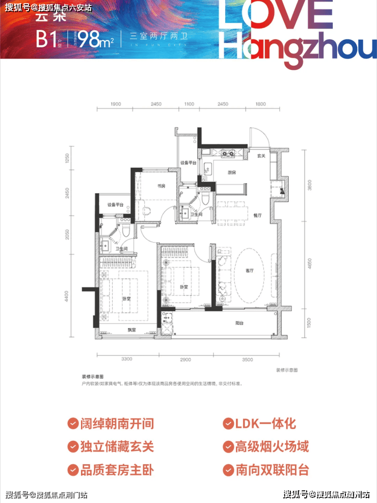 建面约98㎡进阶三房