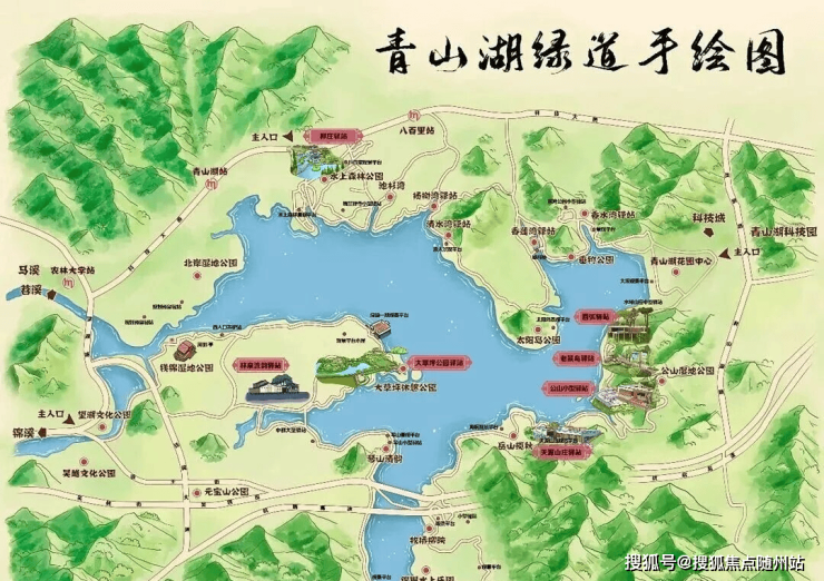 湖山绵延,在此环湖绿道慢跑、骑行、散步、垂钓,水上森林间泛舟。