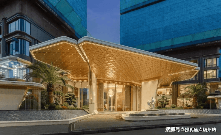 建筑底部则以暖棕色石材铺陈,并通过大量倒圆弧工艺处理,赋予建筑温润的质感。弧形与波浪线条的巧妙融入,让建筑在光影下更显灵动。