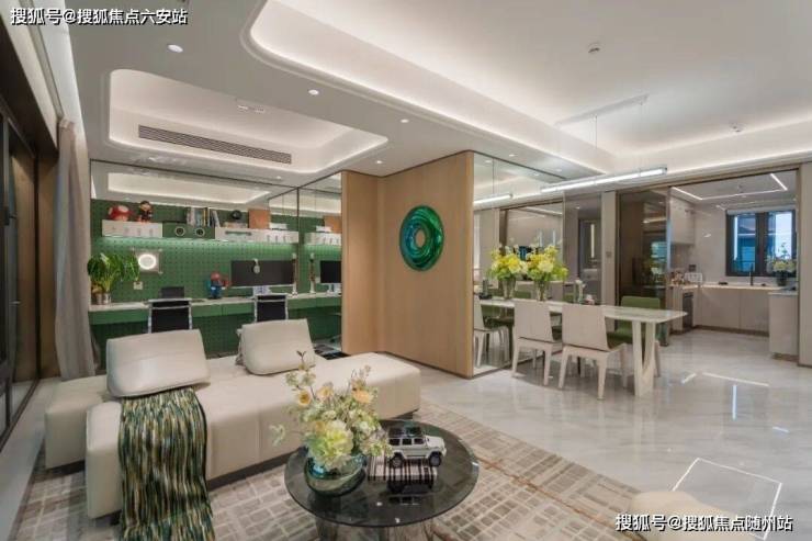 社区整体抬板设计,融合1800㎡下沉艺术会所、4米挑高架空层泛会所(阅读室、共享办公区)及三大主题公园,形成晴雨无阻的社交空间。
