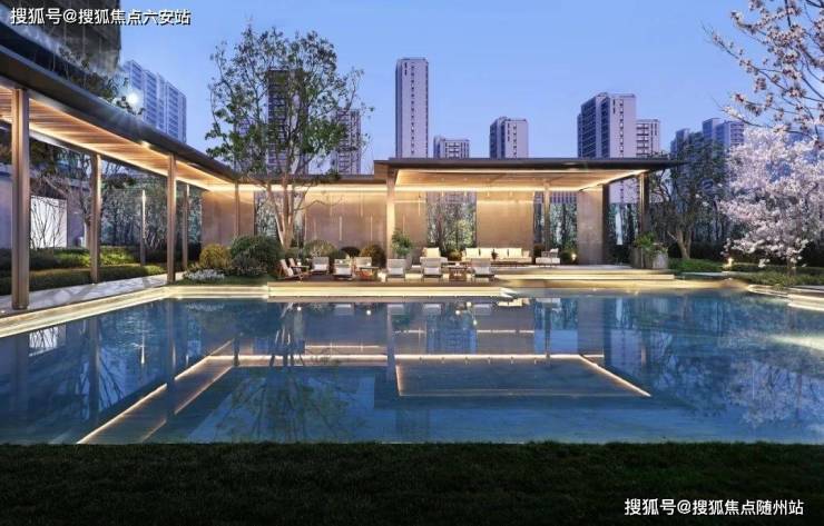 水的粼动,光的应和,伴随着水中樱花树的造景,以及池底冰川蓝马赛克的丰富色彩搭配,让整个场景的气质更加惬意、缤纷,仅是静静的欣赏这一片水面,就能沉浸于丰盈的情绪和感观之中,遐想未来的美好生活。