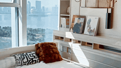 巨大的玻璃幕墙,如同永不落幕的IMAX巨幕将钱塘江的潮汐、奥体璀璨的天际线,实时放映为专属于你的城市电影。景致随心境流转,于此,静谧与辽阔达成美妙的共生。