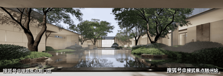 景观设计由北京顺景园林操刀,以“溪山行旅”为叙事主线,打造“归林-观山-临水-栖谷”四重景观序列,中央水景池底镶嵌《溪山行旅图》局部浮雕,实现文化符号的沉浸式植入。