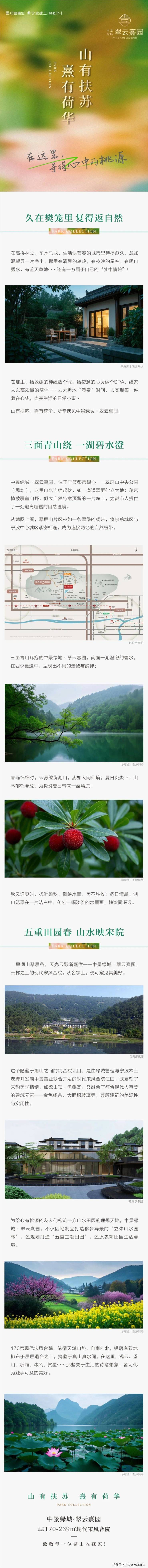 纯宋风合院,类独栋,独门独院,绿城造,超低容积率,送菜地、送花园,项目自带会所、康养、农场、菜地、登山步道、垂钓中心等。