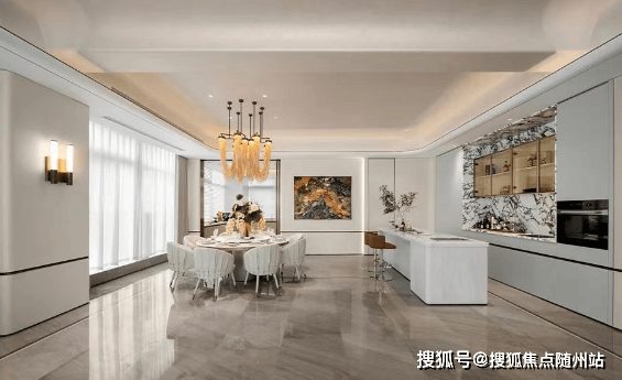 建面约410㎡【湾潮】:五房五卫,WSD世尊团队设计的“摩登东方”风格,4个套房+独立家政间,餐客厅面积达109㎡,隐藏式家政动线设计。