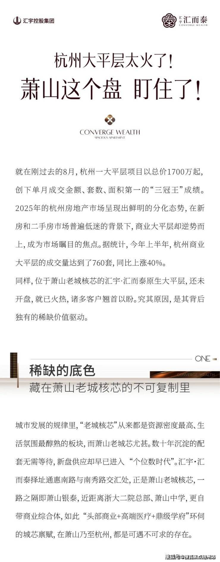 汇宇·汇而泰择址通惠南路与南秀路交汇处,正是萧山老城核芯,一路之隔即萧山银泰,近距离浙大二院总部、萧山中学,更自带商业综合体,如此“头部商业+高端医疗+鼎级学府”环伺的城芯禀赋,在萧山乃至杭州,都是可遇不可求的存在。售楼热线:☎ 400 832 8823「售楼处」☎〢🔻已认证〢◆🔻