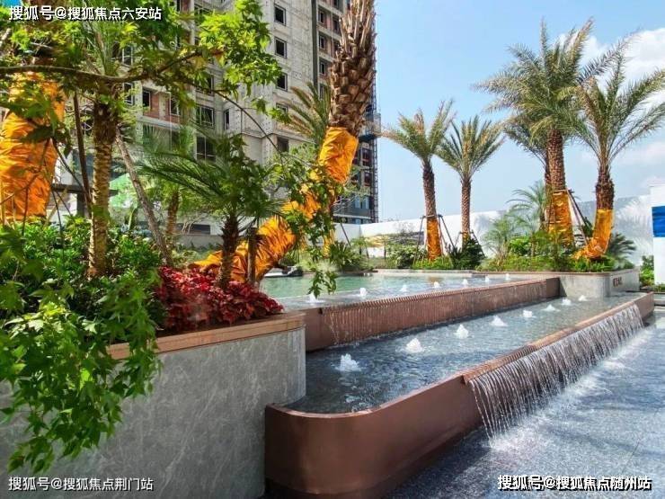 置身景观廊架之下,纵眼望去,东南亚棕榈科植物阵列其间, 约 183.5㎡ 亲子戏水池、酒店感礼仪水景相映成趣,绿荫草木、天光云影倒映于缓缓流动的水面上,宛若一幅立体的江山画卷,流动生活的无尽遐思。