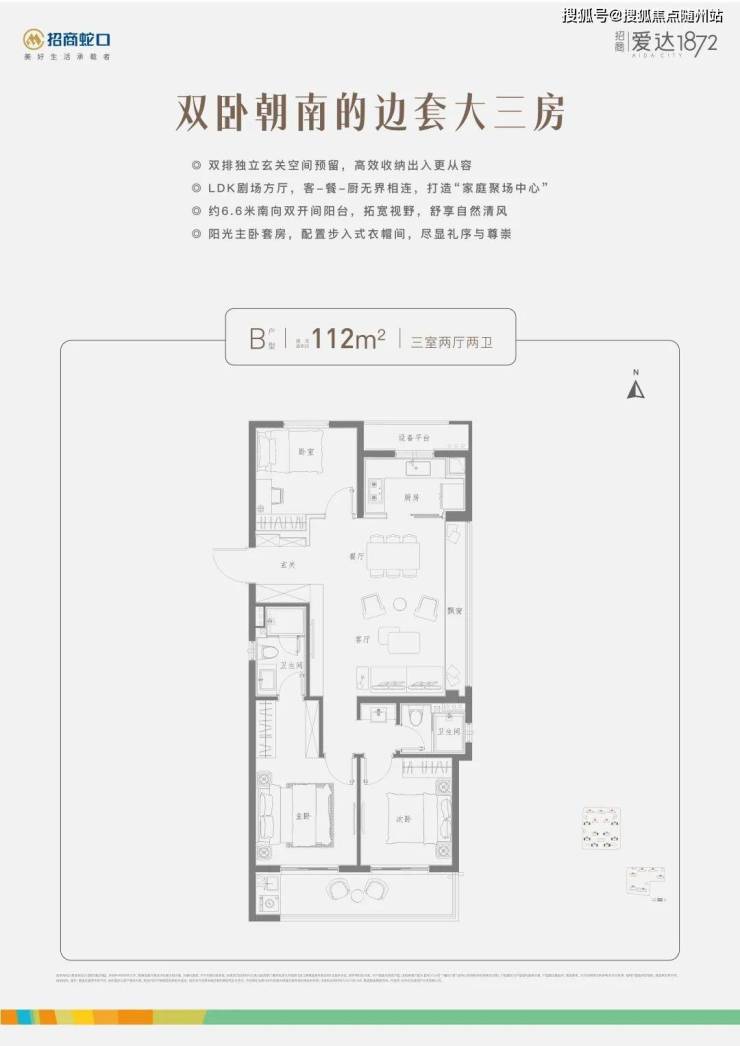 建面约112㎡三房两厅两卫:
