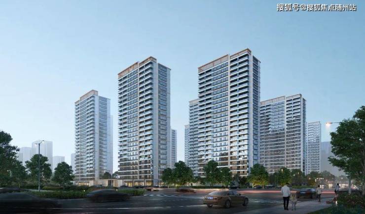 先看项目立面,区别于常规的对称手法,采取局部非对称设计进行了特色打造,色调上则选取质感更佳的高级灰,并辅以金色装饰线条及大面积玻璃修饰,视觉呈现上更具层次感和立体感,而顶部创意打造香槟色的金属格栅塔冠,则赋予了整体更高的辨识度。