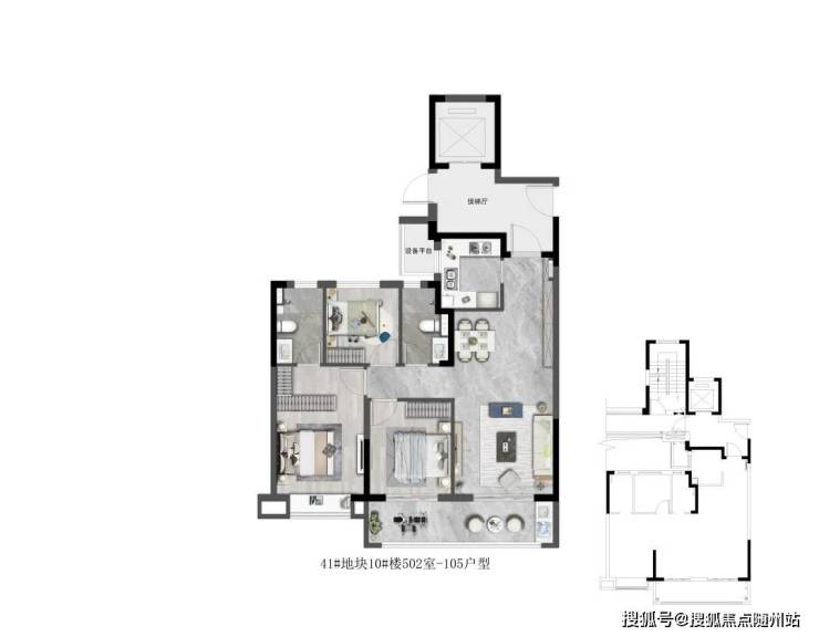 建筑面积约105㎡舒阔三房,户型方正、舒朗空间,主卧套房带步入式衣帽间、观景飘窗,打造品位之享。