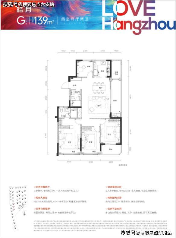 项目在售主力户型为68-139㎡,得房率最高达82%。其中:
