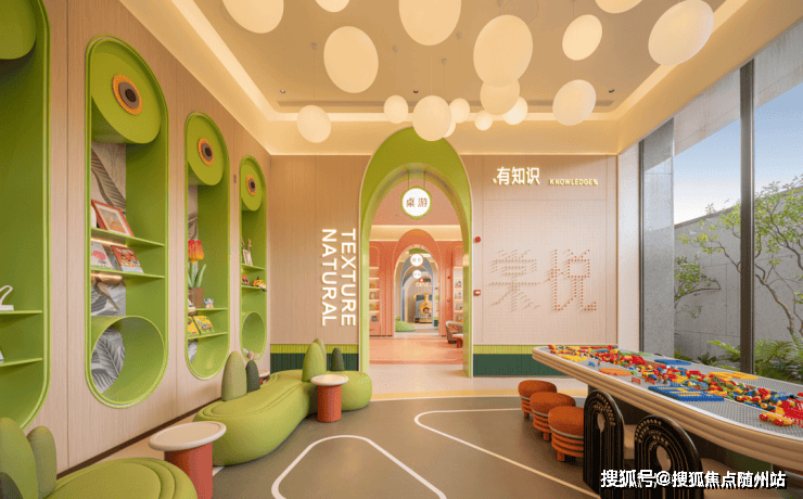 项目内部设置主题架空层,从全龄业主的生活出发,规划了复合阅读书吧、会客、童玩、健身、青少年活动天地、长者康养等功能空间,每一处空间都像是一个超级“聚场”,是开放的社区朋友圈。