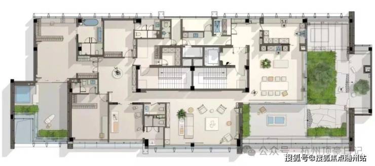 会所:2100㎡下沉式艺术会所(恒温泳池、高尔夫模拟室),米其林私宴厅由西湖索菲特主理。